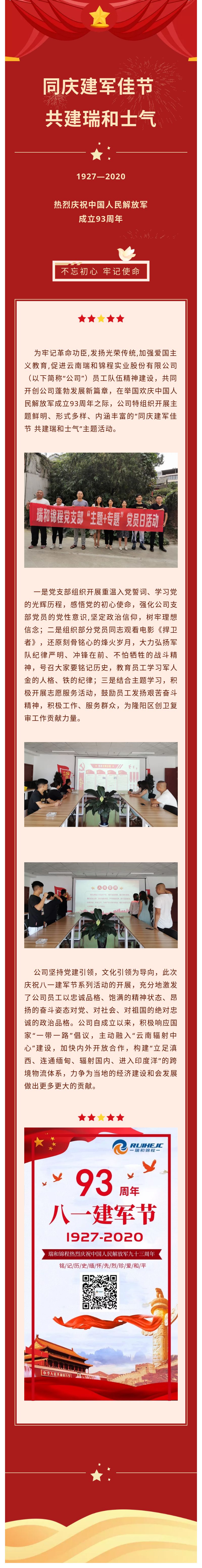 新聞動態(tài) 業(yè)務(wù)推介 黨建工會 電子刊物 公示公告 首頁 > 企業(yè)資訊 > 黨建工會 同慶建軍佳節(jié) 共建瑞和士氣 來源:瑞和錦程 瀏覽量:7510 日期:2020-08-01 上一篇:瑞和錦程第二屆工會委員會 換屆選舉工作圓滿完成 下一篇:緬懷英烈 致敬英雄